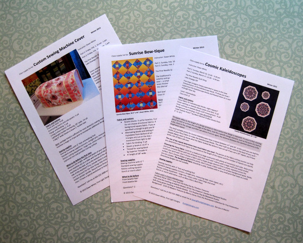 I just dropped off class supply lists for three new classes I’m teaching in early 2013 at the Pine Needle in Lake Oswego, Oregon. If you’d like to find out more about the classes, clicking on this link will take you directly to my Upcoming Classes page.