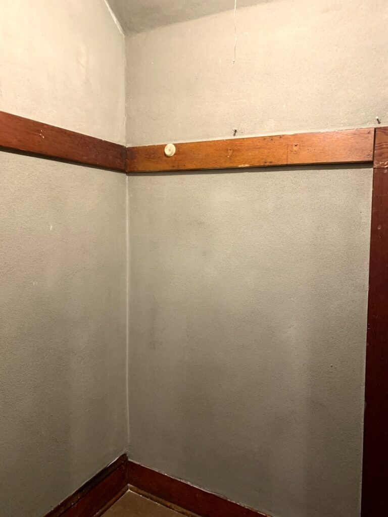 On this wall you can see how the previous owner used leftover strips of wallpaper to finish papering the wall: