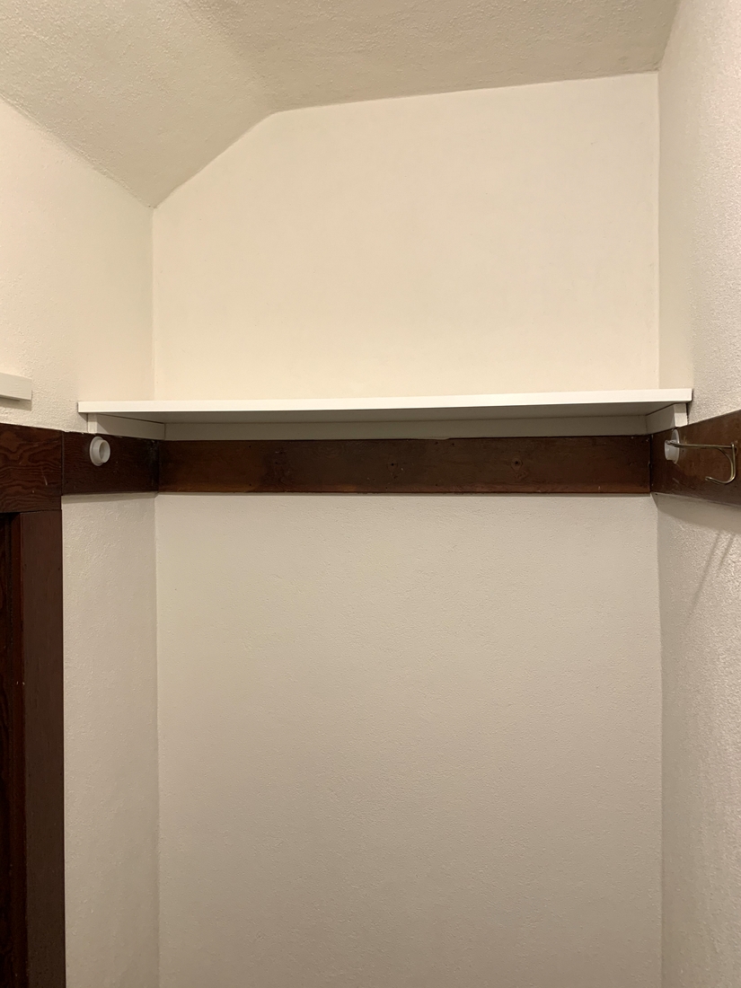 It took me two days to prep and prime the closet. Getting thorough coverage was a challenge as the plaster absorbed paint like a sponge. But I prevailed, and I must say: it’s already looking pretty good!