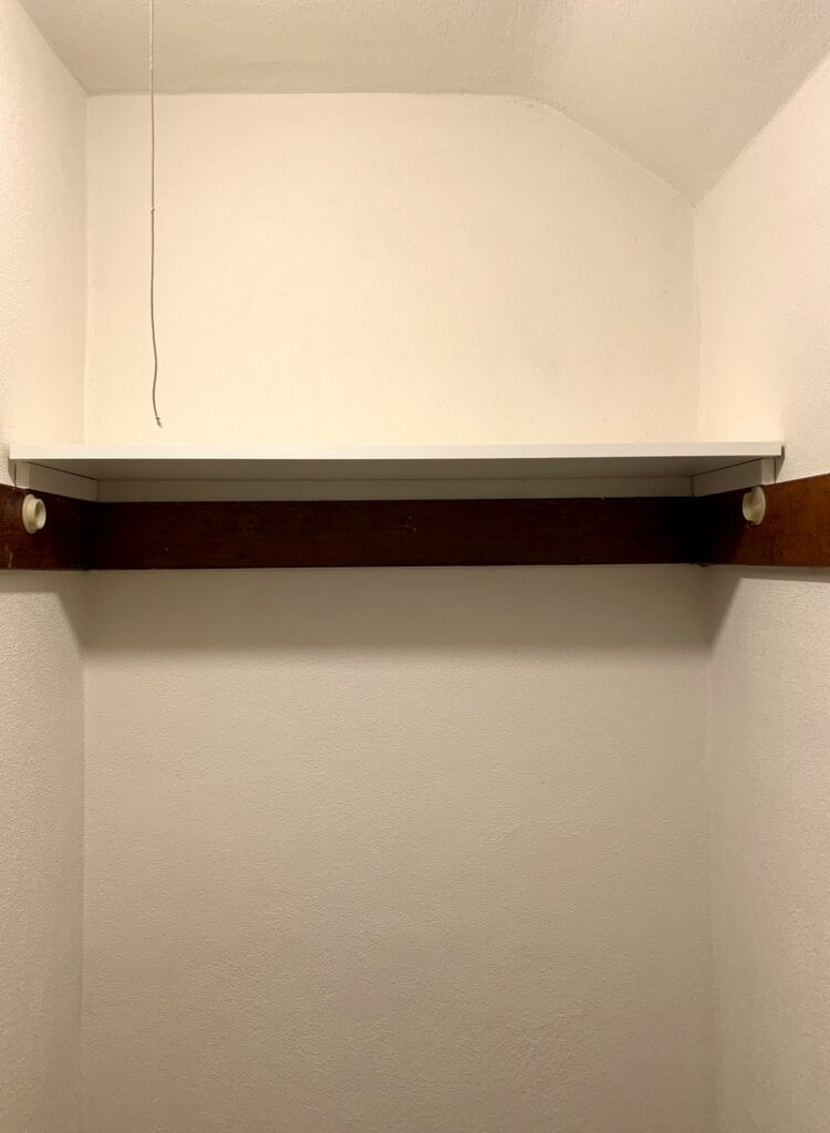 The plaid strips didn’t match, of course. This would have driven me crazy had I not blocked the offending view with the contents of the closet.